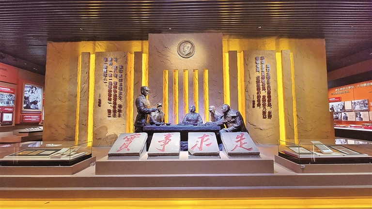 延安革命纪念馆中的“实事求是”石刻。资料图片